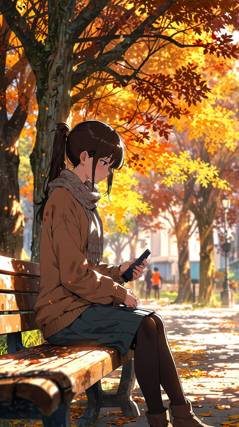 The character sits alone on a bench, surrounded by falling leaves - a visual metaphor for words that drift away unsaid. I chose warm autumn colors (golden yellows, deep oranges, soft browns) to contrast with the cold feeling of emotional distance. The park is beautiful, yet lonely.