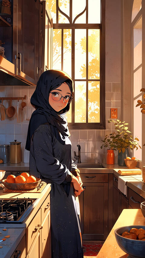 The setting is inspired by Moroccan and Middle Eastern homes - warm, cozy spaces filled with the love and labor that make a house a home. I wanted to capture the reality: the laundry basket that's never empty, the pot simmering on the stove, the buzzing phone with messages she'll answer "later," the rare five-minute break with mint tea by the window.